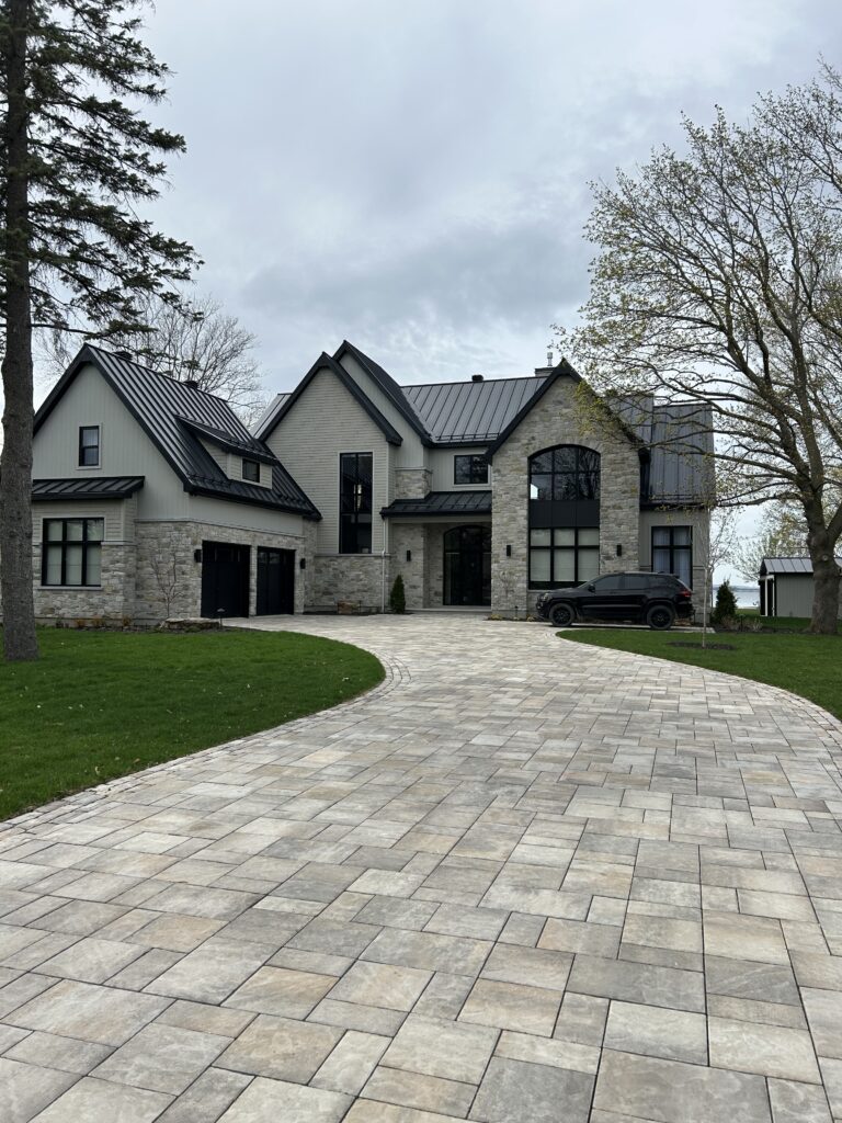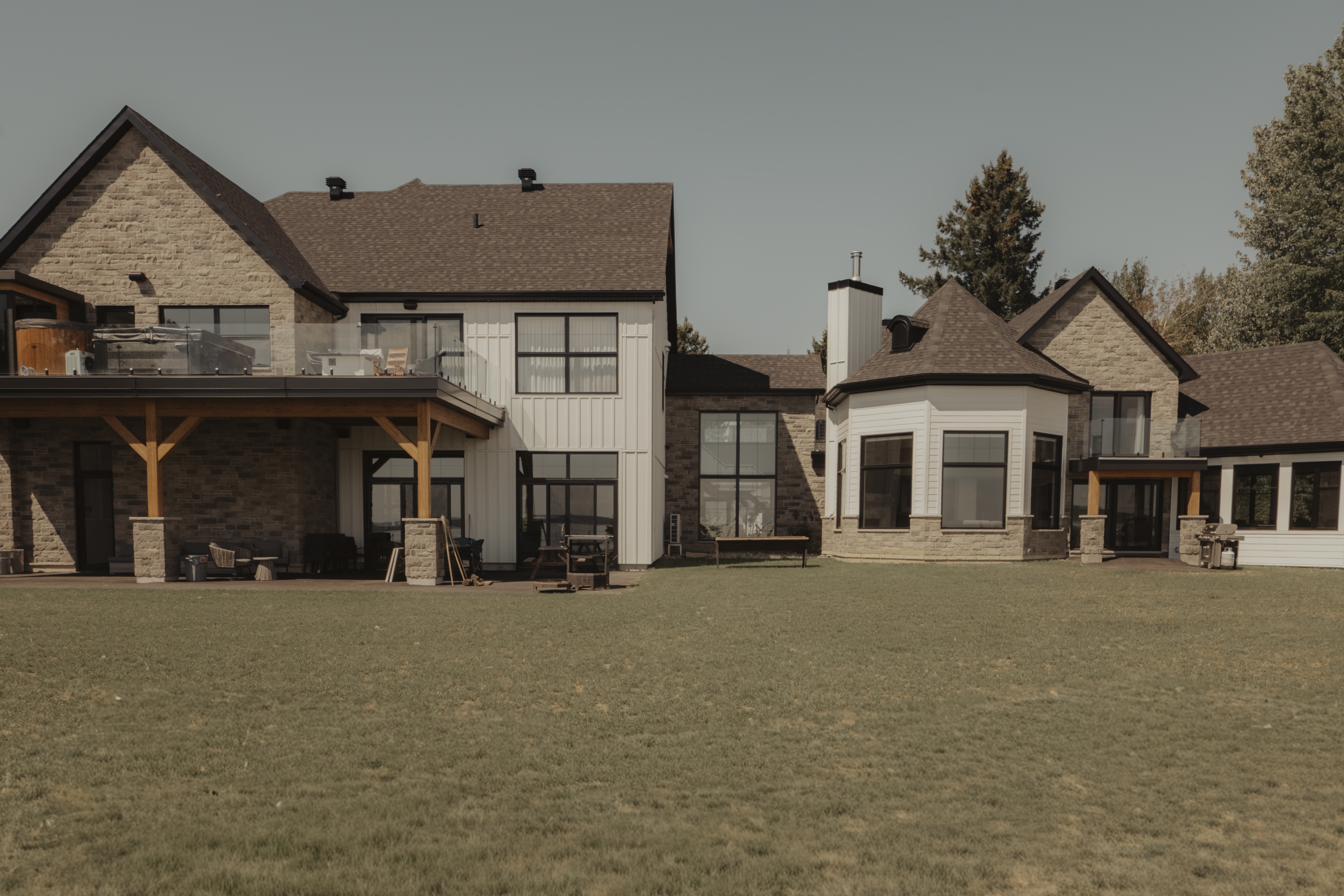 - Finition extérieure : chevauchement d’aluminium 1¾ po et 3 po, moulure à brique et capsiding